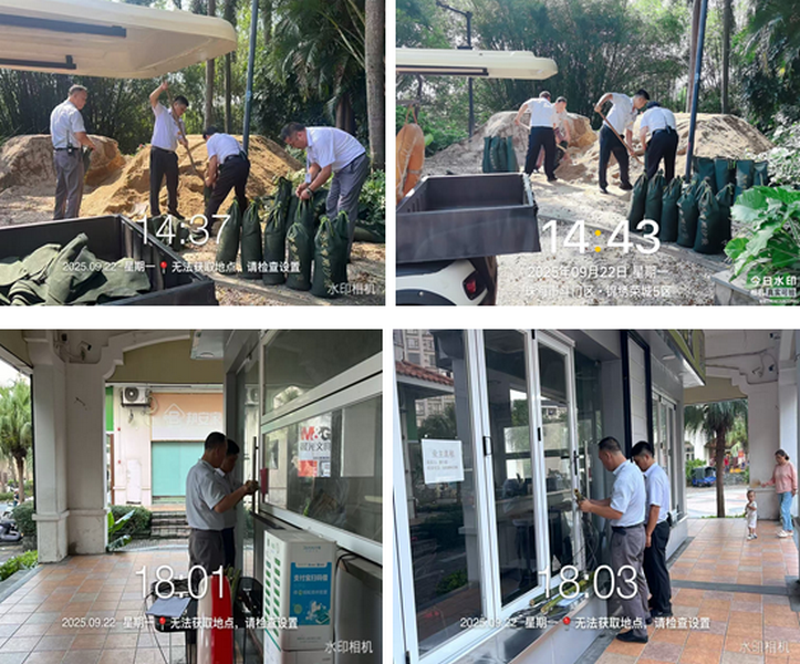 二是,加大物业管理辖区内巡逻频次与覆盖范围,对树木进行加固剪枝,重点关注地势低洼、易积水区域及人员密集场所,及时排查并处置潜在安全风险;建立风险台账,对发现的隐患问题及时整改确保隐患闭环管理。