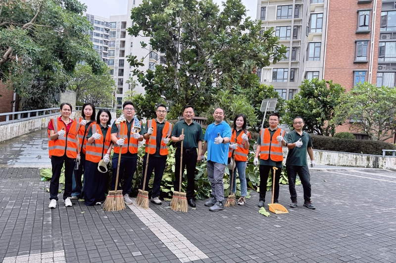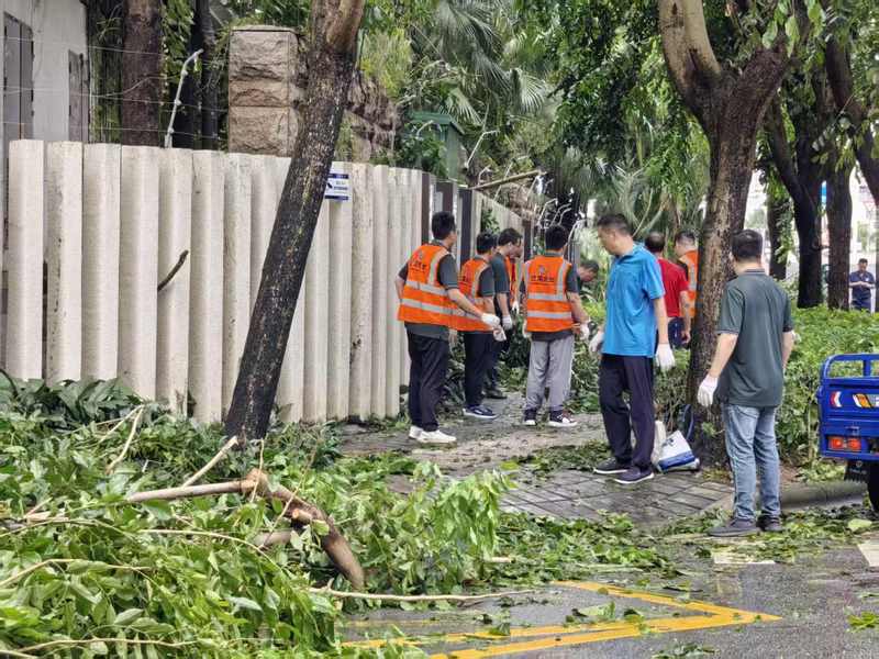 9月25日,由世荣兆业经营班子牵头,总部职能部门迅速响应,抽调70余名员工组成7支复产支援服务队,奔赴各物业项目投入清障一线。身着统一T恤与醒目马甲,他们成为台风过后园区中最亮眼的“流动旗帜”。