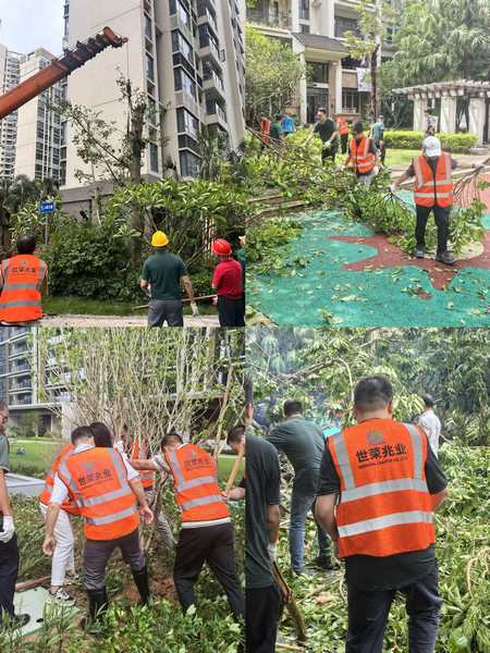 服务队以 “抢时间、保秩序” 为目标,争分夺秒推进灾后清障工作,重点围绕道路清障、树木处理、积水清理三大任务集中发力,通过高效协作,2天支援,快速恢复小区公共环境,全力保障居民生活秩序与辖区运转如期回归正轨,确保各项目尽快恢复正常运作状态。