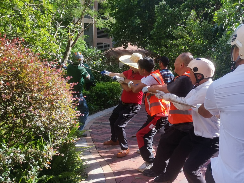 倒伏树木的扶正更是一场体力与技术的双重考验。扩坑、支撑、牵拉、加固、培土……世荣人在实践中总结出一套高效的“流水线”作业法。口号声中,众人合力,一棵棵树木重新屹立,团队的凝聚力也在这一刻达到顶峰。